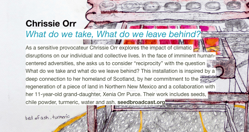 ecoartspace invites you to experience site-works by six ecoartspace artists for our three day pop-up exhibition at member Miriam Sagan‘s private poetry yard in Santa Fe. We will be serving drinks and appetizers, and there will be seating to listen to the artists talk about their work.