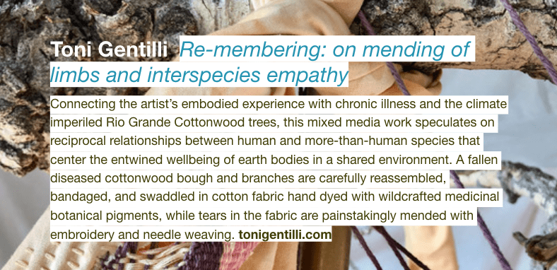 Donations will go toward the printing of two ecoartspace publications; a second edition of our annual exhibition book for 2021, Embodied Forest; and our upcoming 2022, Earthkeepers Handbook.